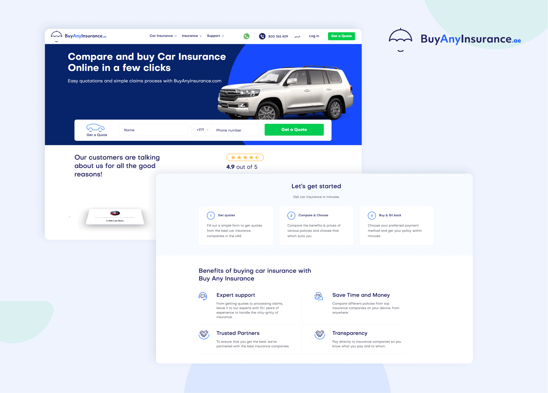 باي أني انشورنس منصة إلكترونية لمقارنة عروض التأمين أون لاين وشراء أفضل تغطية بسرعة وسهولة في الإمارات العربية المتحدة. يستطيع العملاء استعراض مجموعة متنوعة من وثائق التأمين أون لاين ومقارنة الفوائد والأسعار لاختيار أفضل تغطية تلبي حاجاتهم ومتطلباتهم، بعد ذلك يستطيع العميل شراء الوثيقة بأمان والحصول على التغطية في أقل من 60 دقيقة. تقدم باي أني انشورنس عروض أسعار تأمين السيارات والصحة والسفر والمنزل والدراجات النارية، وتتعاون مع أبرز شركات التأمين في الإمارات المحلية والعالمية.